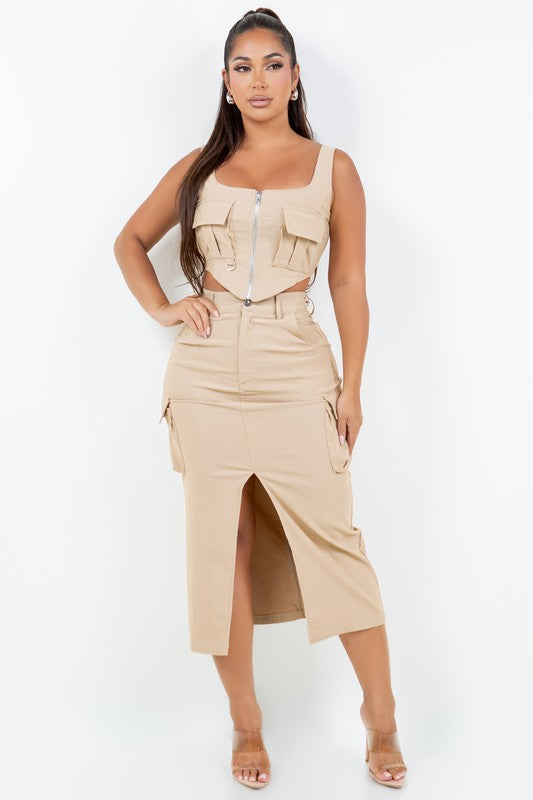 Two-pieces Cargo Dress Set, stretch, model is 5'7 wearing size S